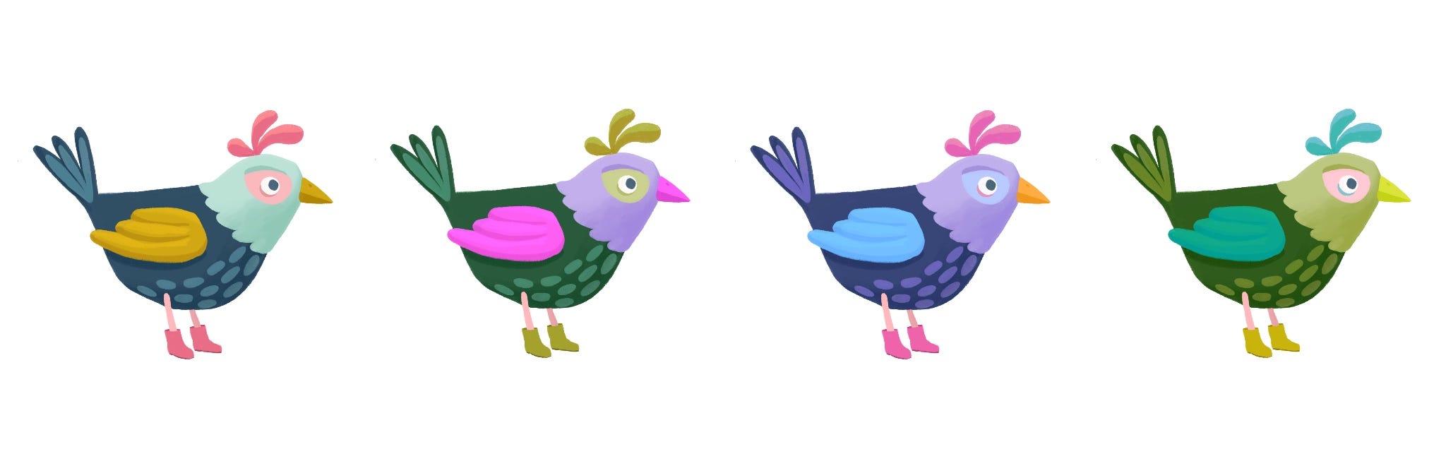 So what happened, where did my last day of January go and was any part of it artistically productive? Well, I drew my 10 minute pencil sketch, worked on my book dummy for a while (most of the ideas for tweaking the manuscript came to me during a dog walk), I prepared images for this post (btw, which one of these chicken colour combos do you like best?) and before I knew it it was February.