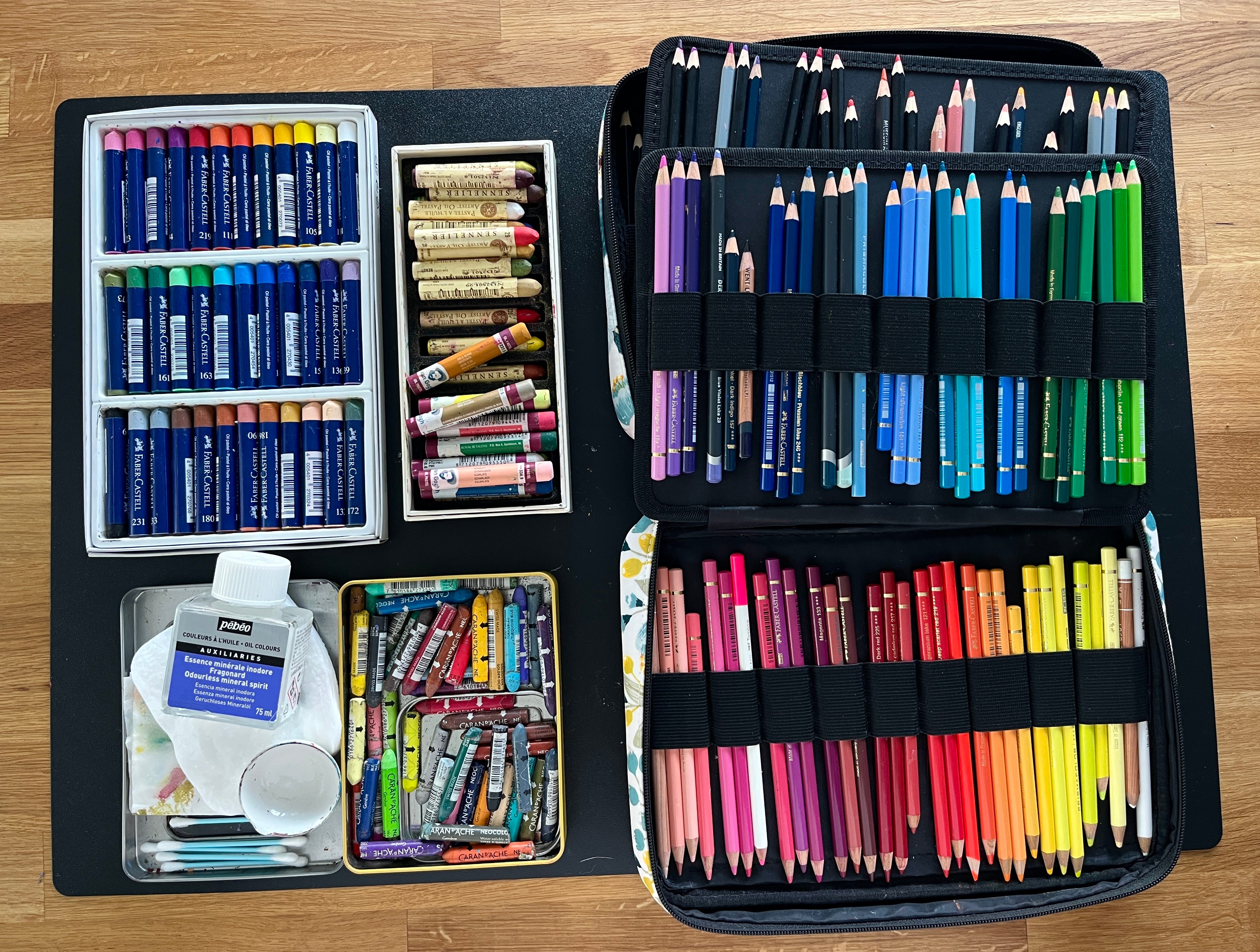 I was never a big fan of oil pastels, I always found the sticky, waxy surface unappealing and their chunky size hard to control. But then I took a short course on using mineral oil with pastels by Elina Ellis and now I’m enjoying the possibility of combining thin layers of pastels with coloured pencils and other dry media.